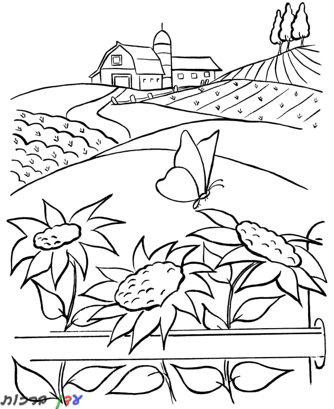 דף צביעה חווה ופרדס אוכמניות ליד החווה