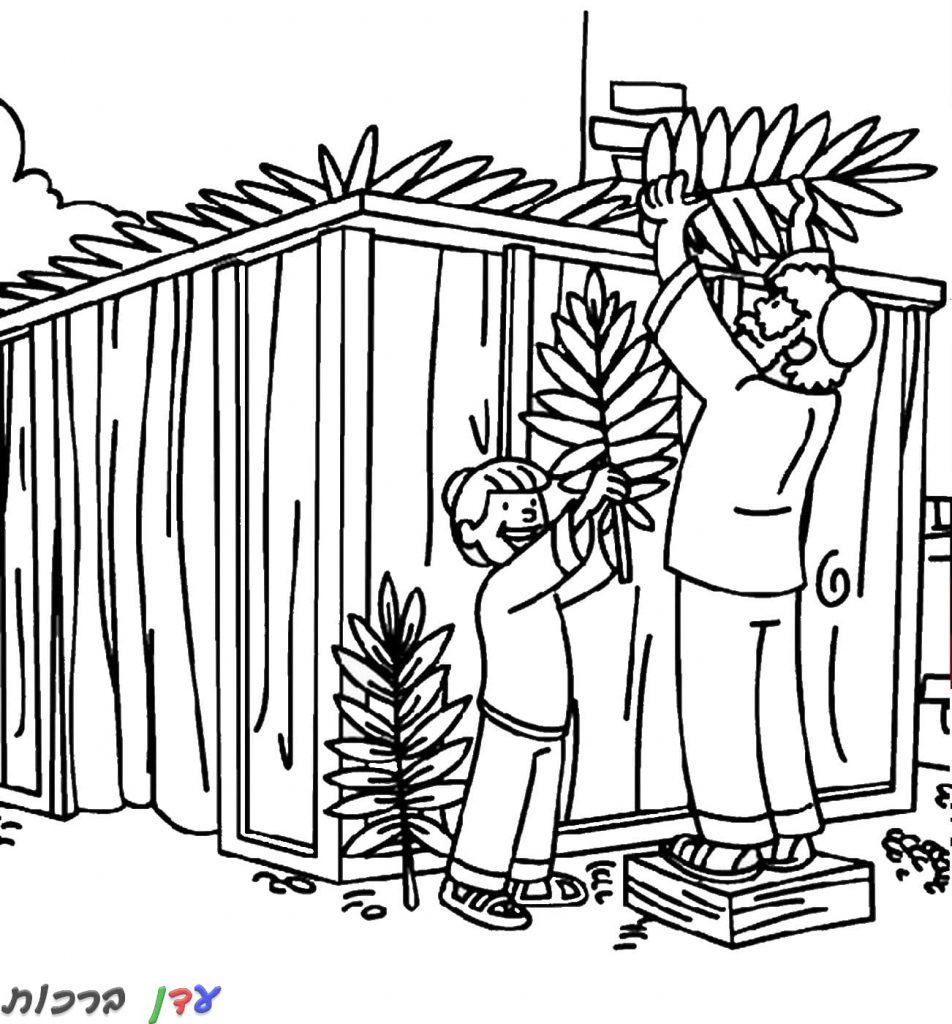 דף צביעה אנשים שמים סכך לסוכה