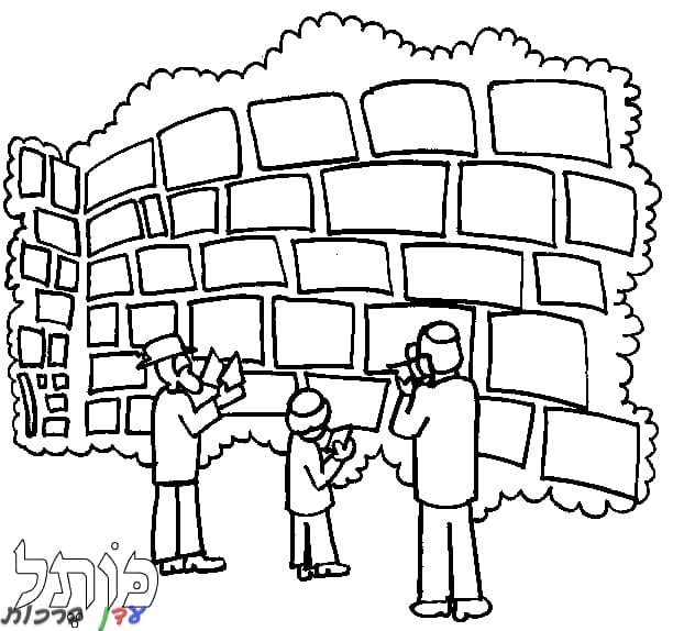 דף צביעה אנשים שמים פתקים בכותל לכבוד יום ירושלים
