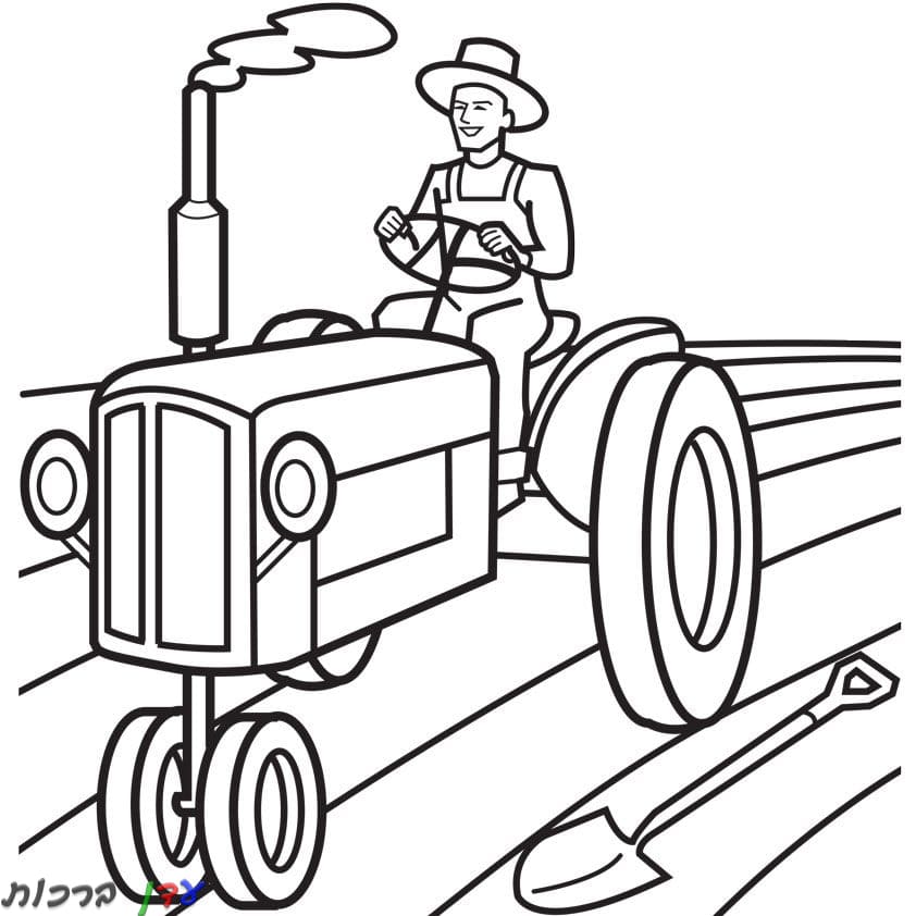 דף צביעה חווה ופרדס בן אדם נוסע בטרקטור