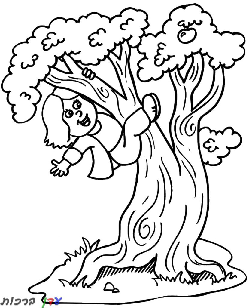 דף צביעה טו בשבט ילדה מטפסת על עץ