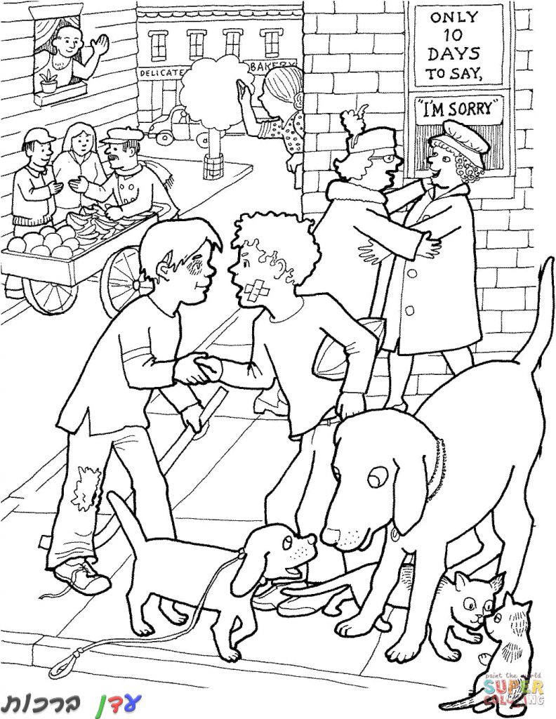 דף צביעה יום הכיפורים ילדים לוחצים ידיים