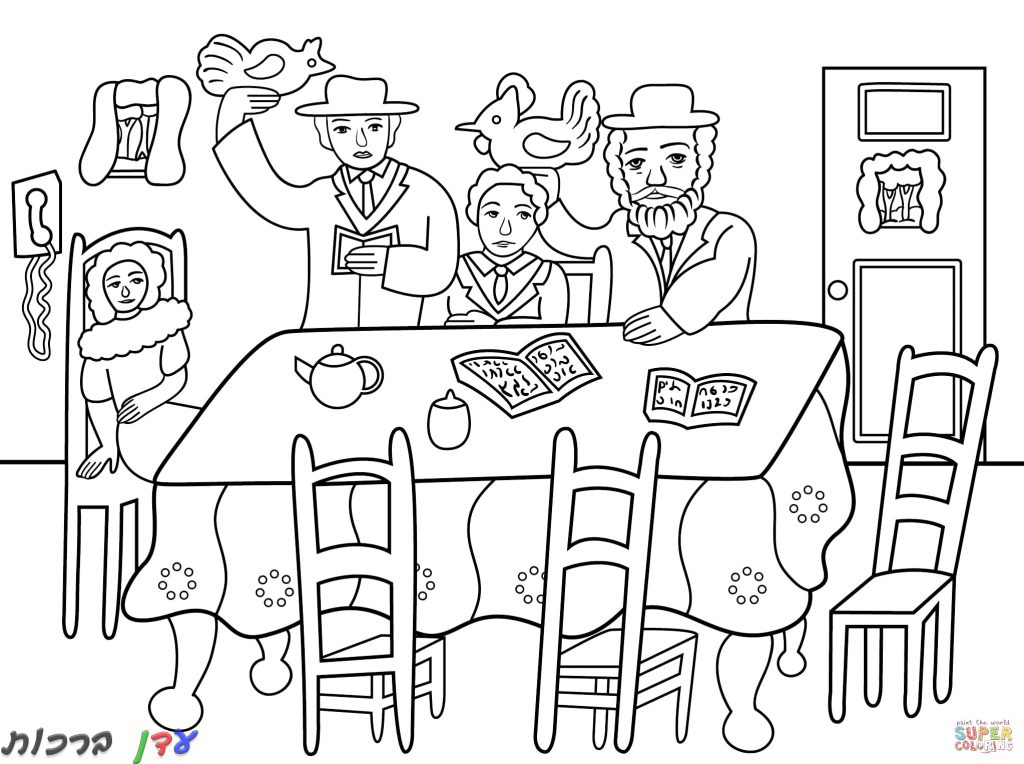 דף צביעה יושבים בשולחן ועושים כפרות לכבוד יום כיפור 1jpg