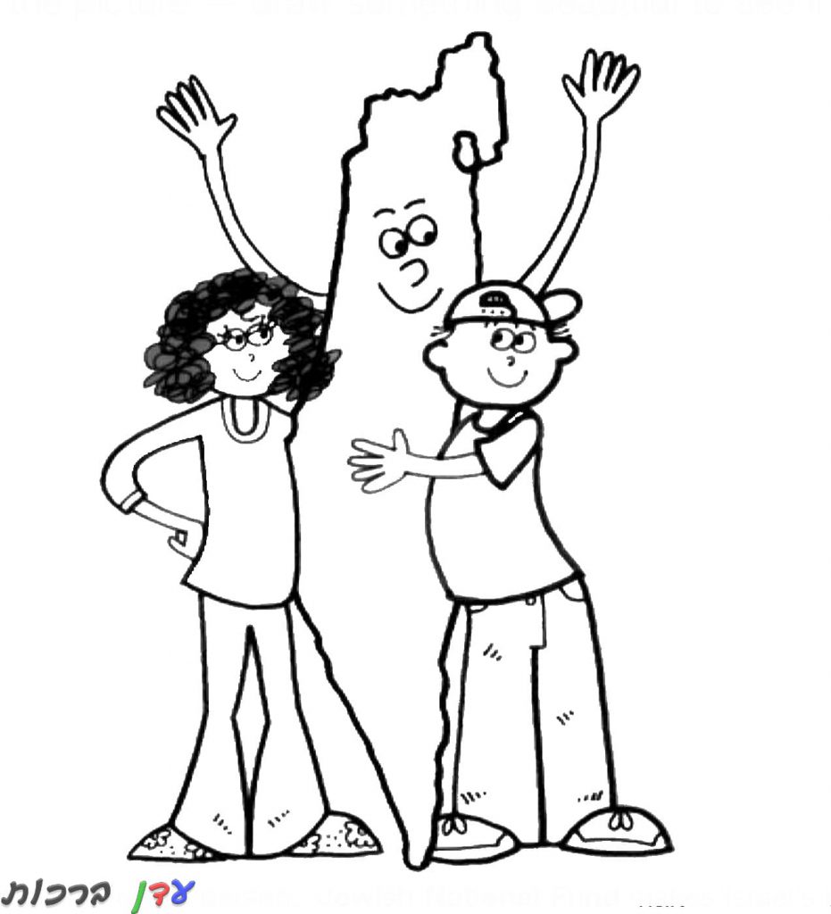 דף צביעה ילדים מחבקים את מפת ישראל לכבוד יום העצמאות