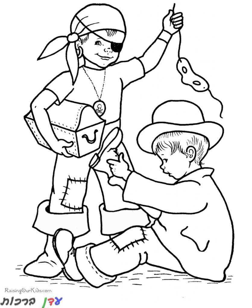 דף צביעה ילדים מחופשים לכבוד חג הפורים