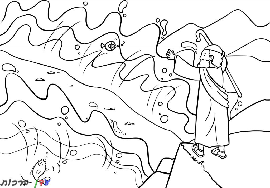 דף צביעה יציאת מצרים משה פותח את ים הסוף