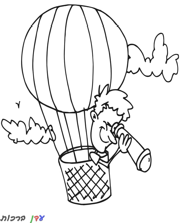 דף צביעה כדור פורח עם ילד שמסתכל ללמטה