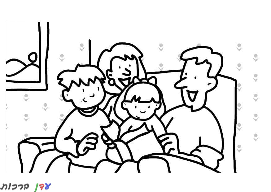 דף צביעה משפחה יושבת יחד לכבוד יום המשפחה