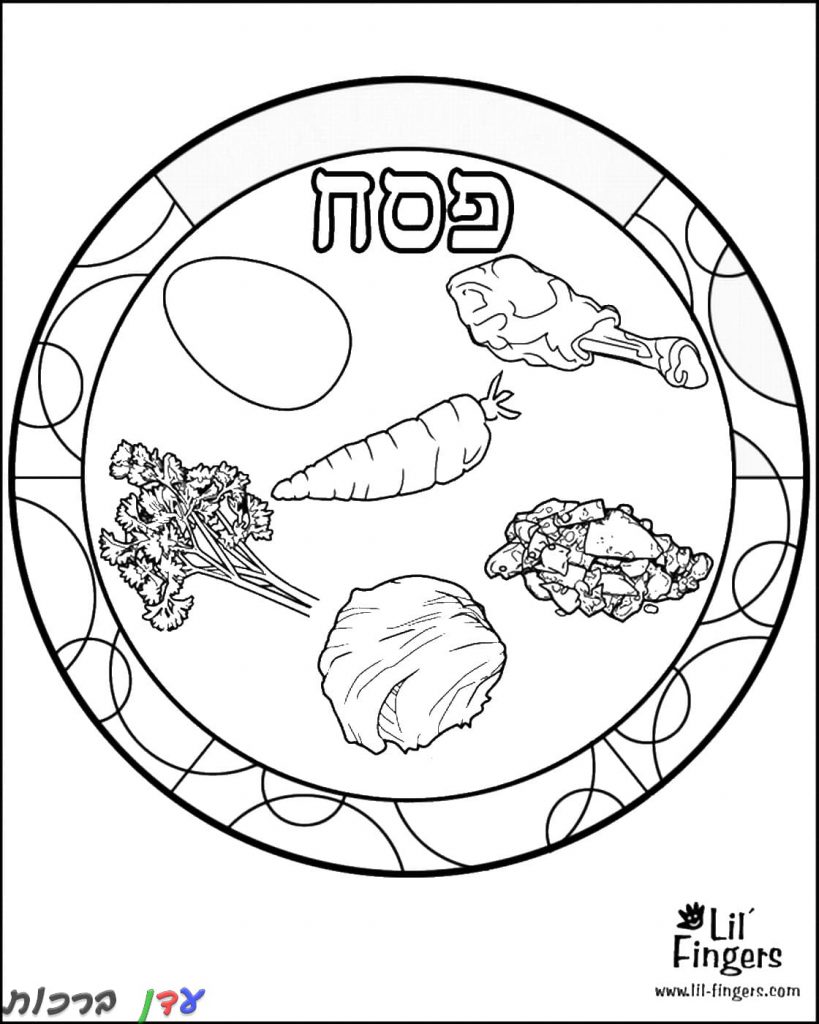 דף צביעה צלחת עם הברכות של פסח
