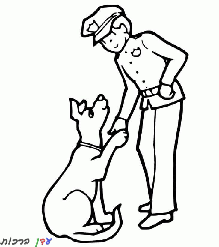כאן תוכל להדפיס את הדף צביעה שוטר נותן יד לכלב או לחילופין לצבוע אותו אונליין ואז ללחוץ על הדפסת דף הצביעה.