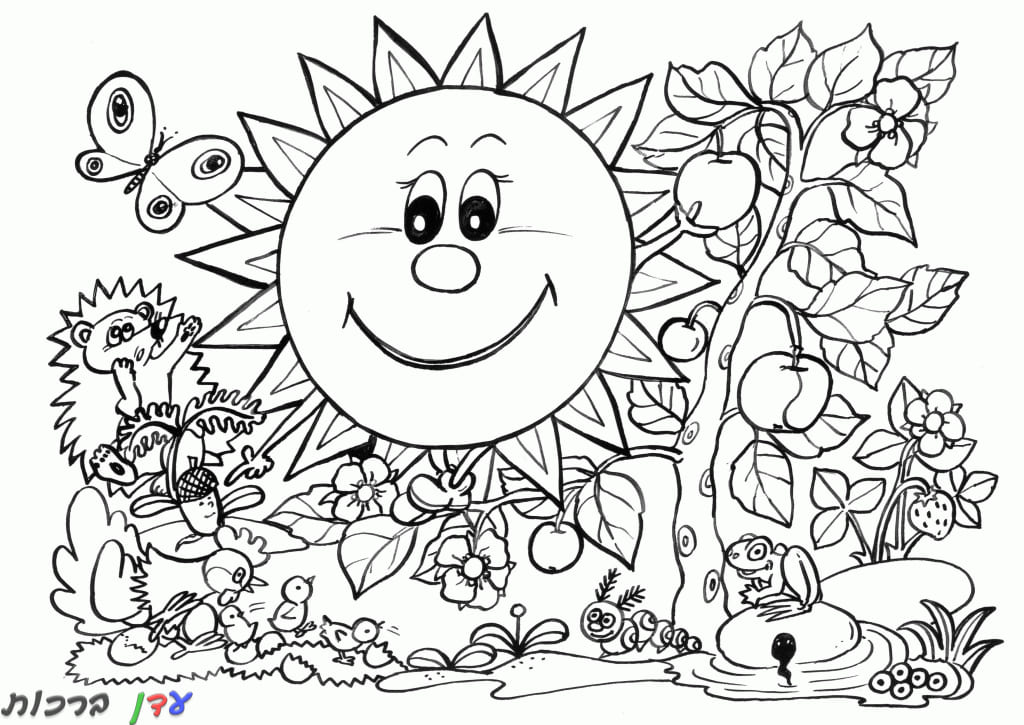 לשיתוף דף צביעה שמש מחייכת באביב ברשתות החברתיות: