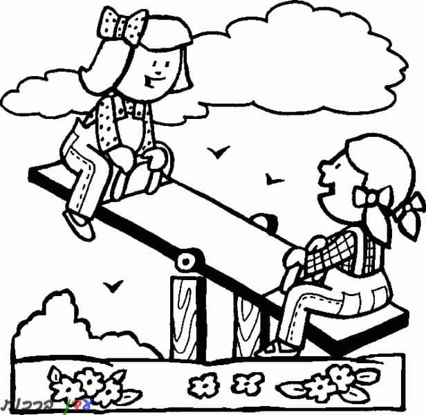 דף צביעה גן שעשועים שני ילדים משחקים בנדנדה