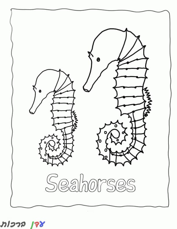 דף צביעה חיות שני סוסי ים קטנים
