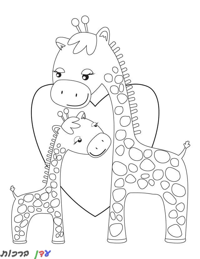 דף צביעה שתי גירפות מחובקות