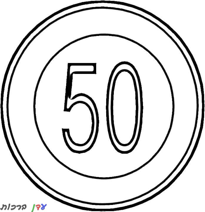 דף צביעה חפצים ותמרורים תמרור שאומר שאפשר לנסוע עד חמישים קמש